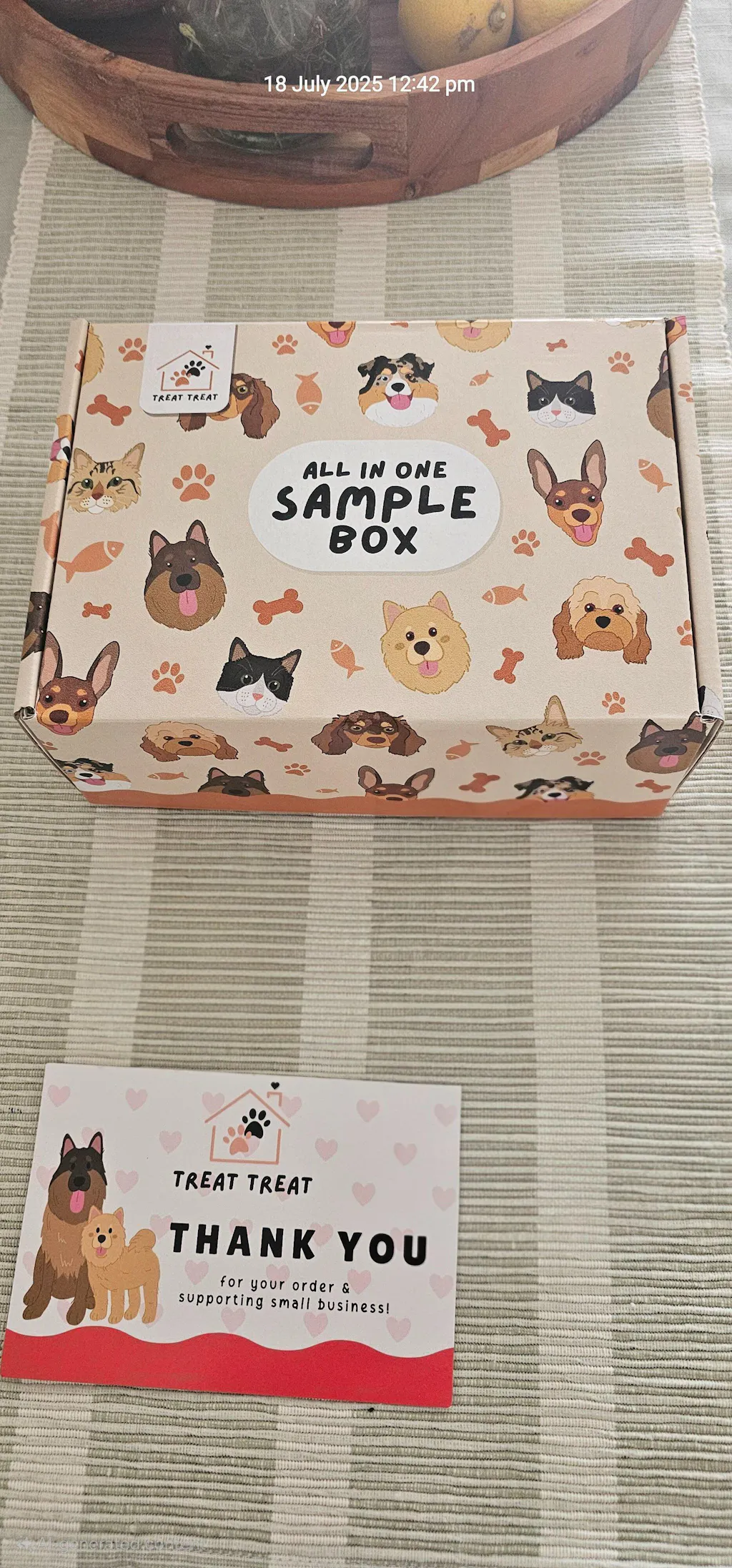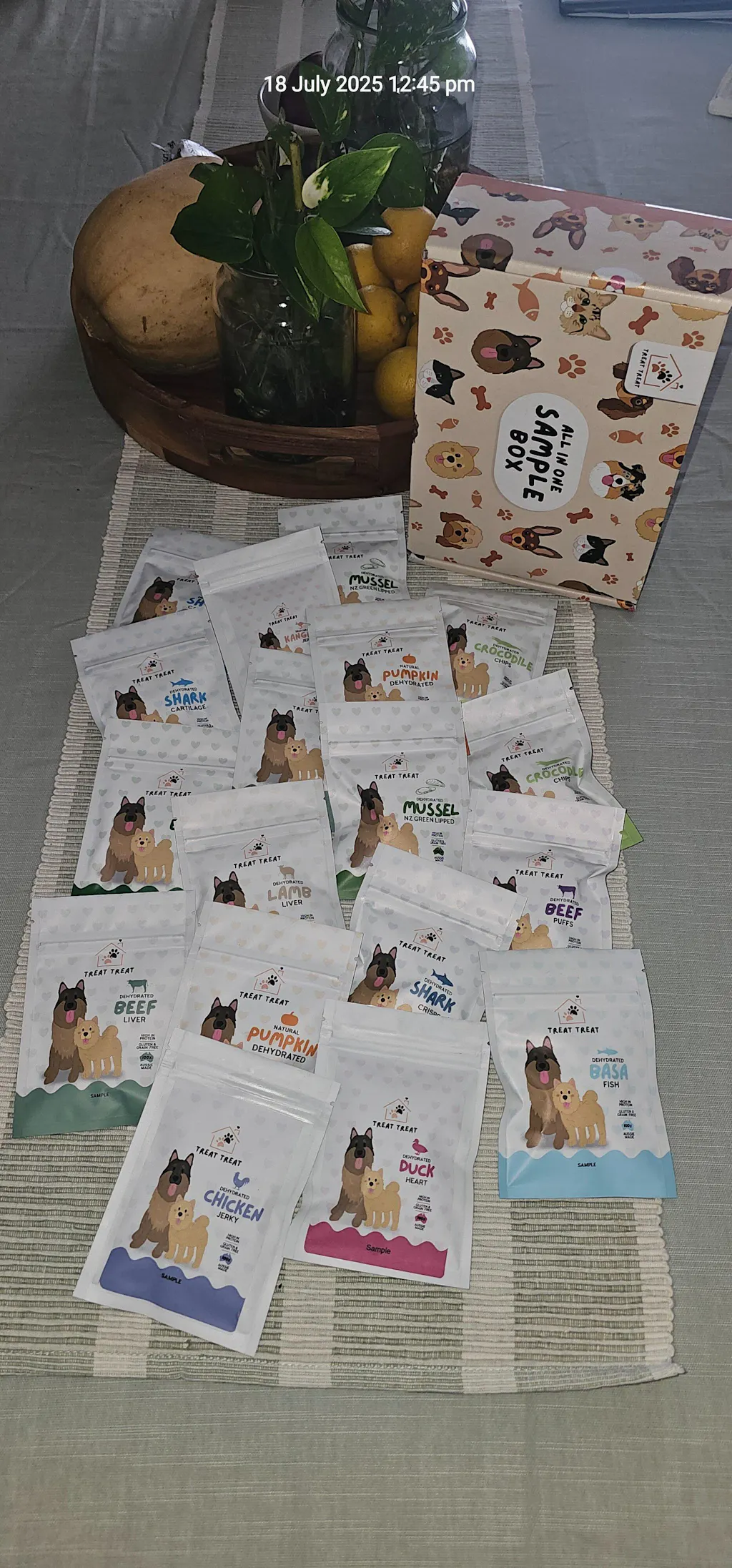 Discover the perfect snack for your furry friend with our All in One Sample Set. This set includes a variety of delicious dog treats, allowing you to try them all before committing to a large order. With this set, you can find your dog's new favorite treat without any risk.