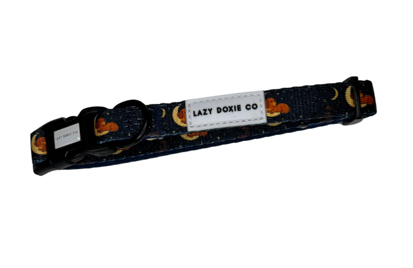 Dachshund Collar is made especially for sausage dogs - lightweight, comfortable, and perfectly shaped to sit above the sternum plate for a secure, non-slip fit. Whether your doxie's strutting through the park or snoozing on the couch, this collar blends durability with Lazy Doxie Co. style.