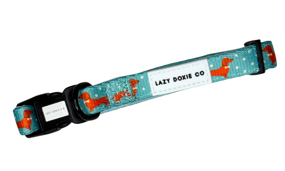 Dachshund Collar is made especially for sausage dogs - lightweight, comfortable, and perfectly shaped to sit above the sternum plate for a secure, non-slip fit. Whether your doxie's strutting through the park or snoozing on the couch, this collar blends durability with Lazy Doxie Co. style.